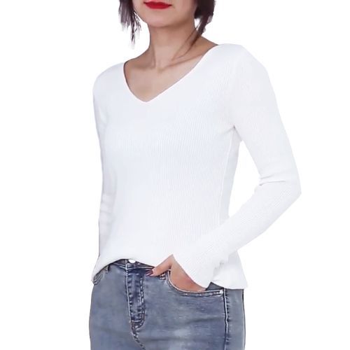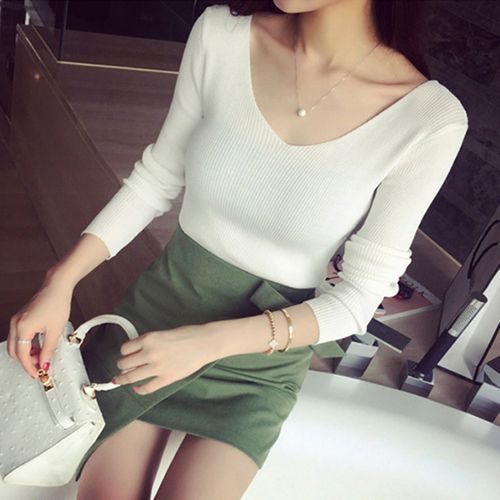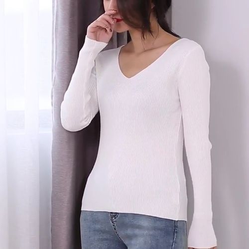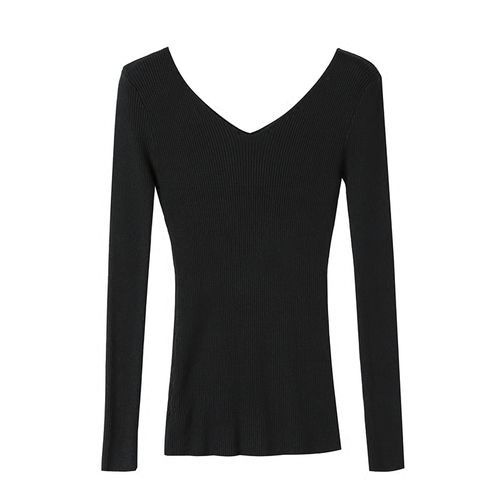 1X Autumn V Neck Sweater Women Winter Knitted Slim Back V-neck Pullover Tops Casual Long Sleeve Knitting Stretch Sweater Pull Femme