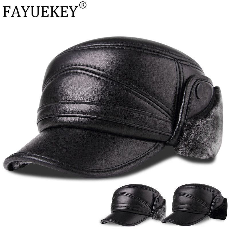2019 New Autumn Winter Men Genuine Leather Ear Protection Caps Fashion Warm Male er Hats Christmas New Year Gift