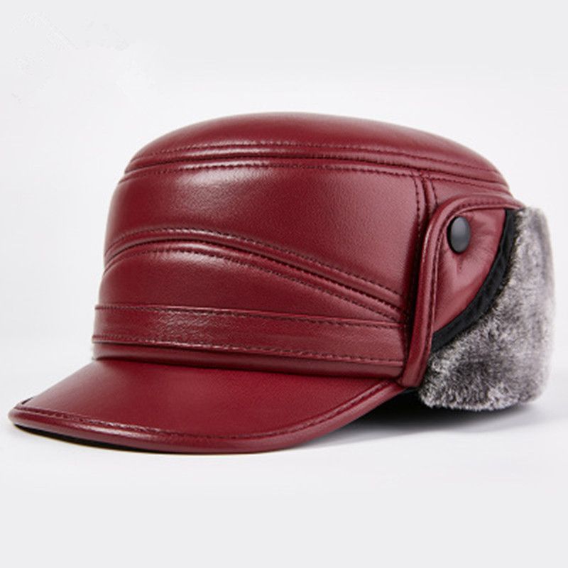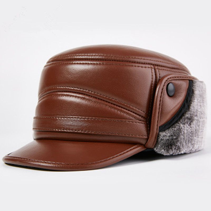 1X 2020 New Autumn Winter Men Genuine Leather Ear Protection Caps Fashion Warm Male er Hats Christmas New Year Gift