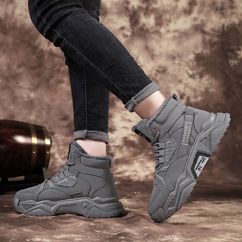 1X Autumn Winter Snow Boots Men Warm Plush Boots High Top Shoes Chaussure Mans Casual Shoes Western Desert Footwear Male Sneakers