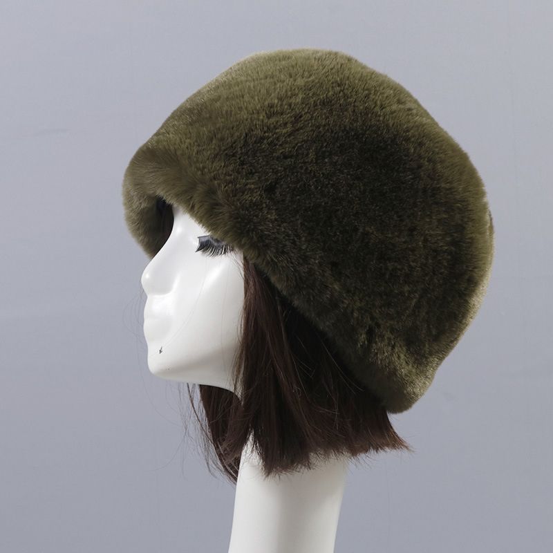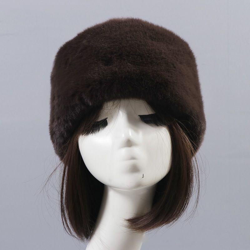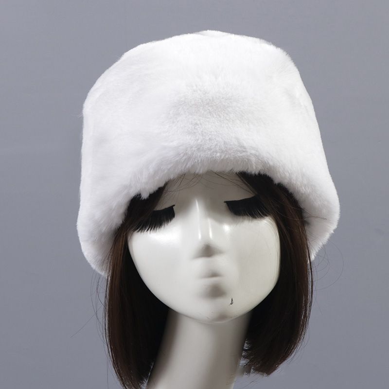 1X Autumn/winter Imitation Rex Rabbit Fur Round Flat Top Hat Short Plush Fur Thick Fur Hairless Hat Black Women