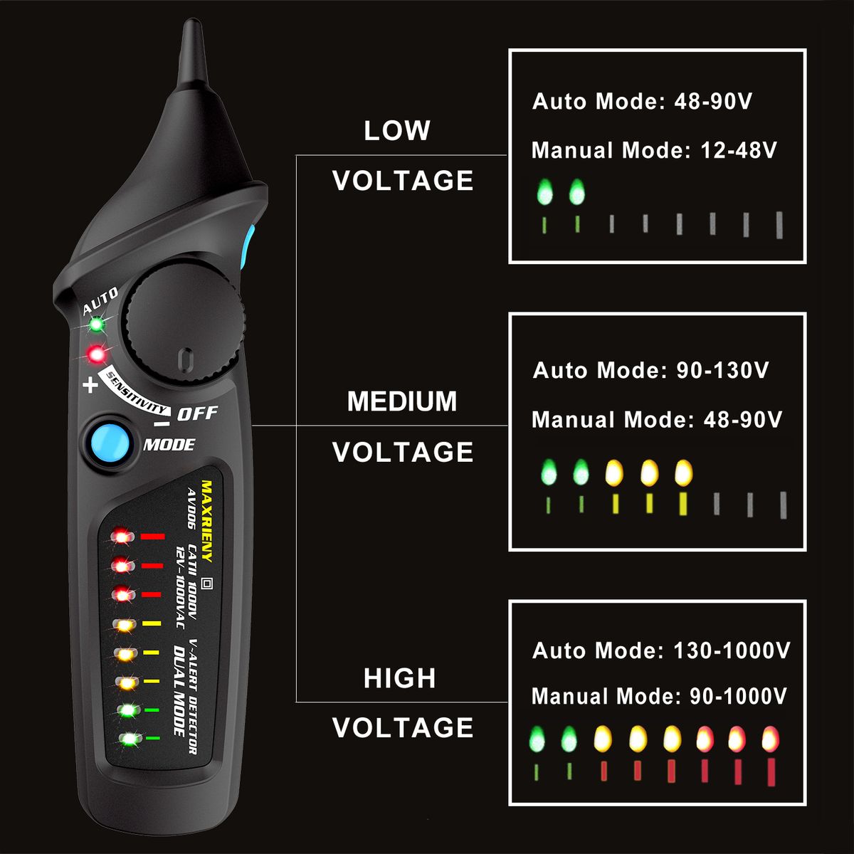 Dual mode: this voltage detector features manual / auto mode, it is convenient to detect and indicate the existence of AC voltage in auto mode, or applied to more occasions in manual mode.
