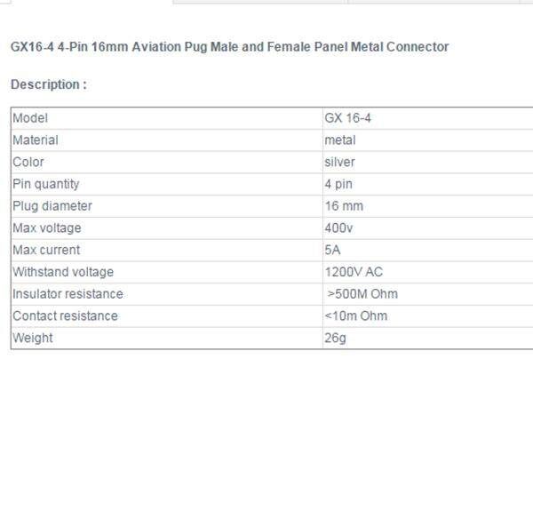 1 x 16mm GX16-4 male and female panel metal connector