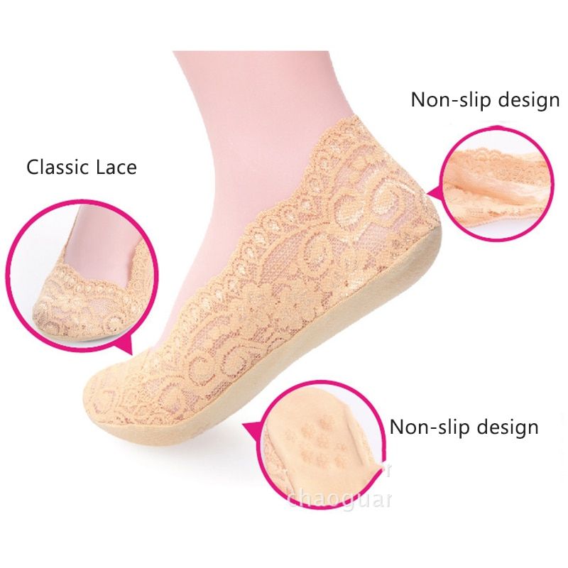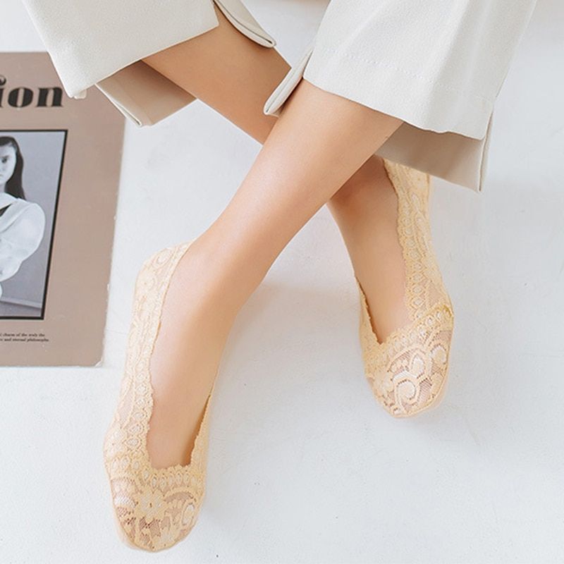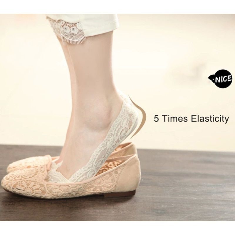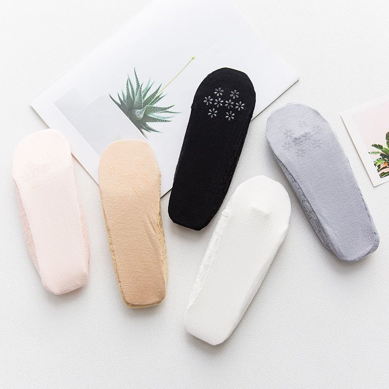 1X Awaytr 2 Pairs/Package Invisible Socks Women Summer Lace Silicone Antiskid Invisible Ankle Socks Short Women's Socks 5 Colors