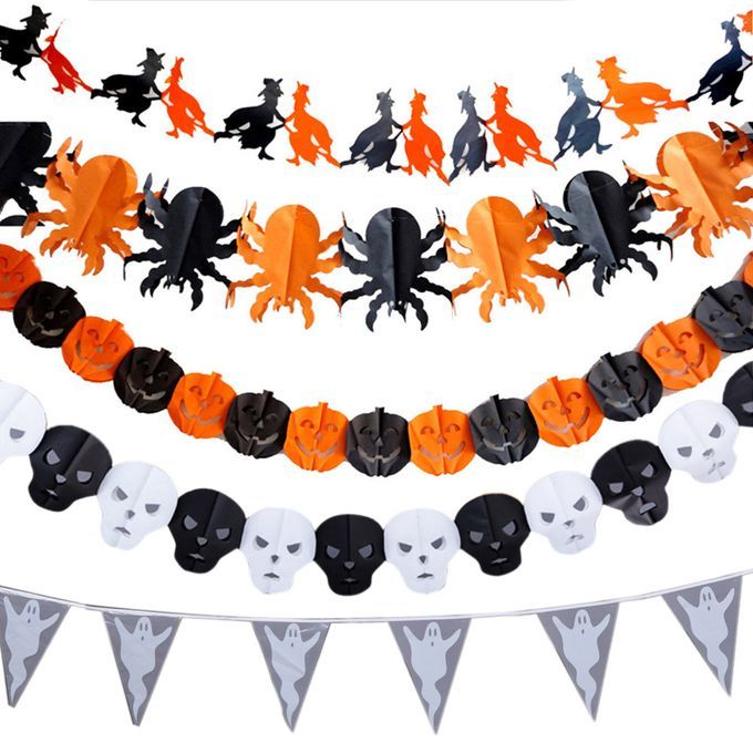 Awesome Pumpkin Witch Ghost Spider Skeleton Head Paper Garla