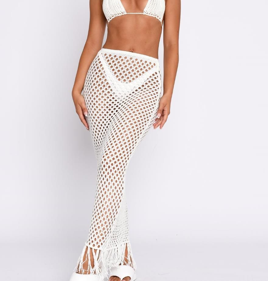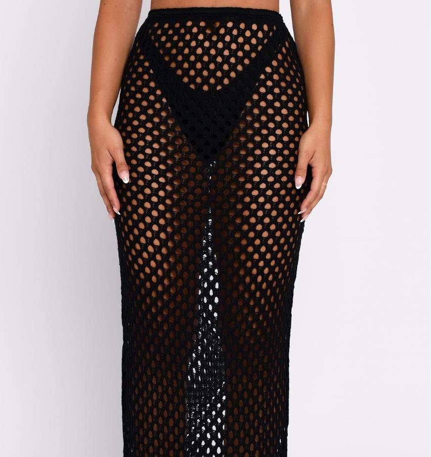 Yiiciovy Women's Sexy Holiday Bikini Cover-Ups Beach Hollow Out Fishnet Tassels Skirts Sexy Lady See Through Beach Long Skirts