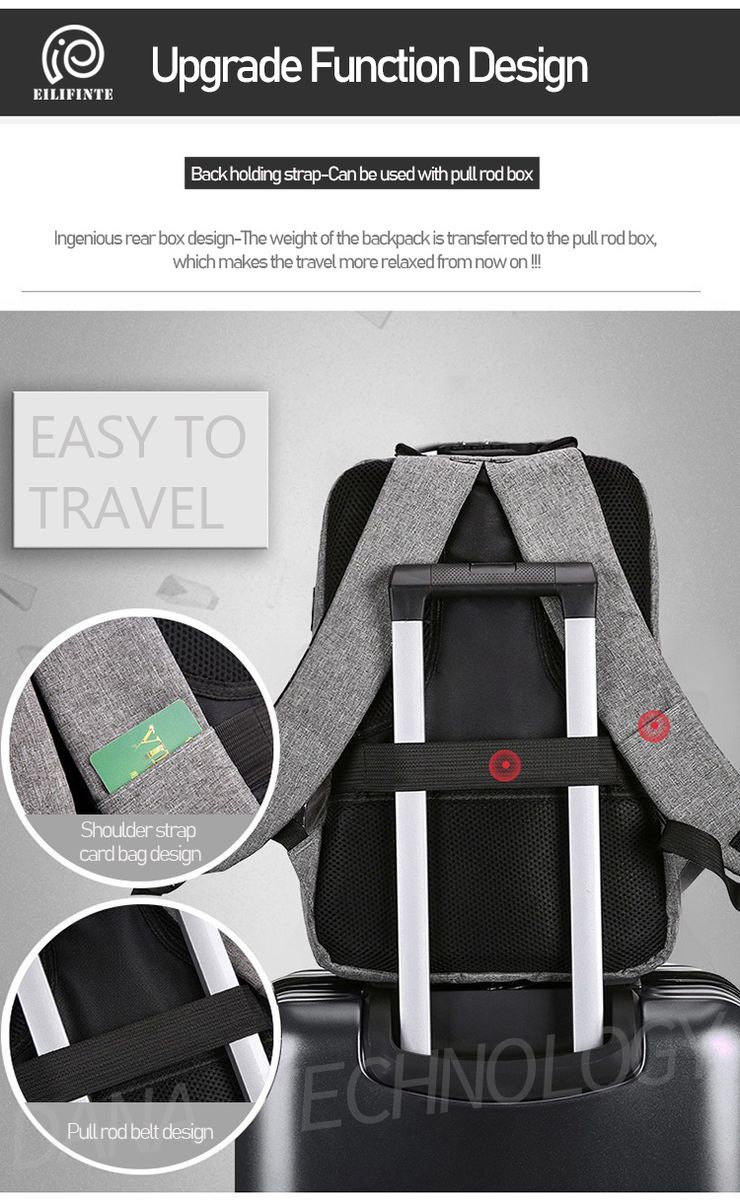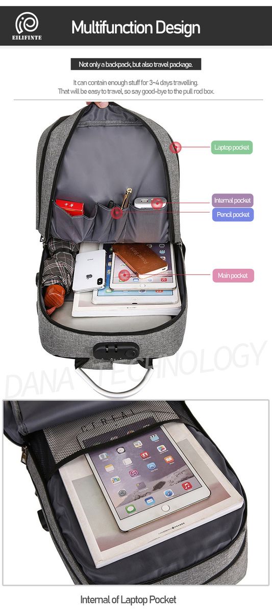 100% high quality Smart Anti-Theft laptop bag backpack for laptop, tablet, cell phone, watch, etc. with high quality zipper and strong stitching.
