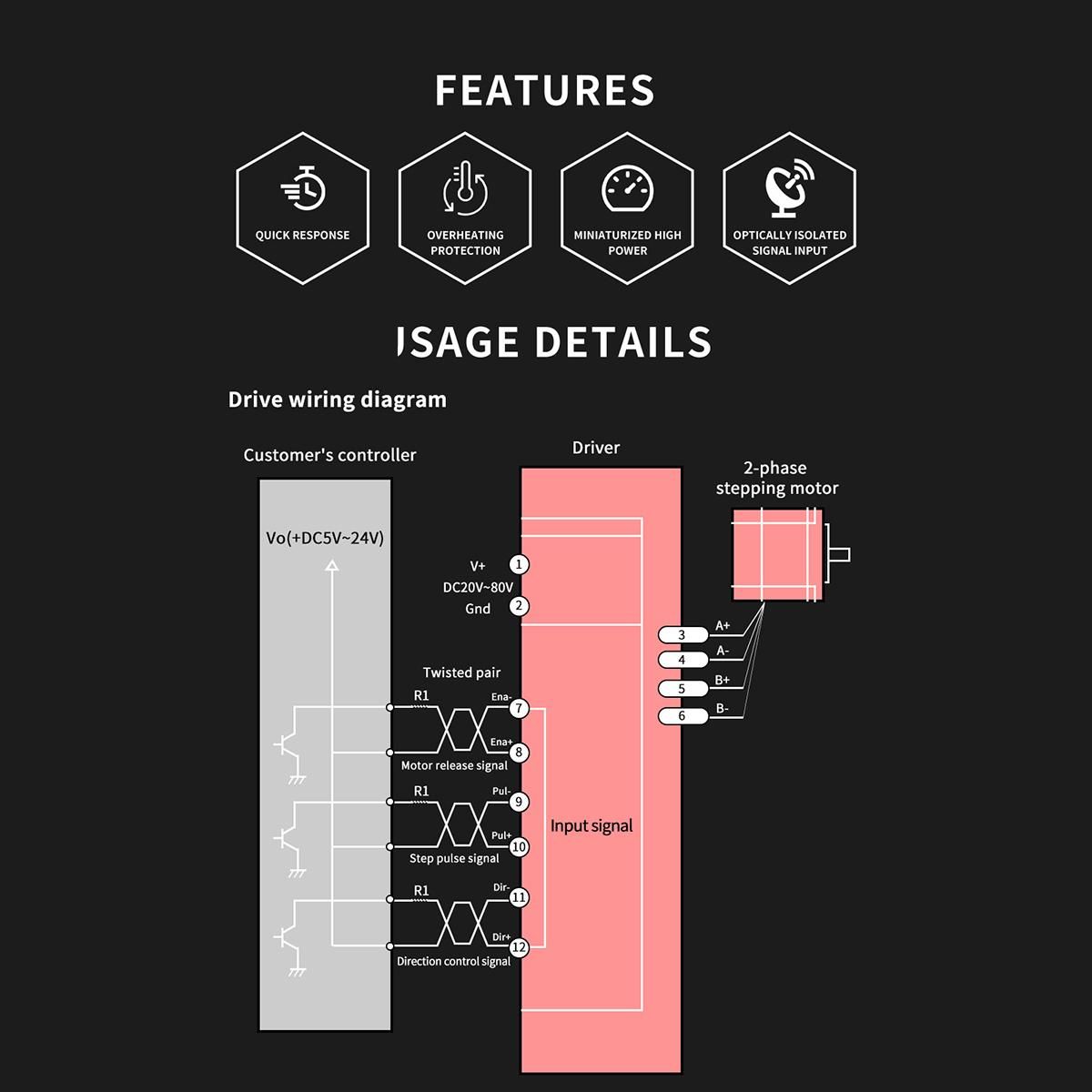 Buy B1206 Full/Half Step Driver 2-Phase Stepper Motor Driver Driving Voltage 20V-120VDC Current 6A in Nigeria