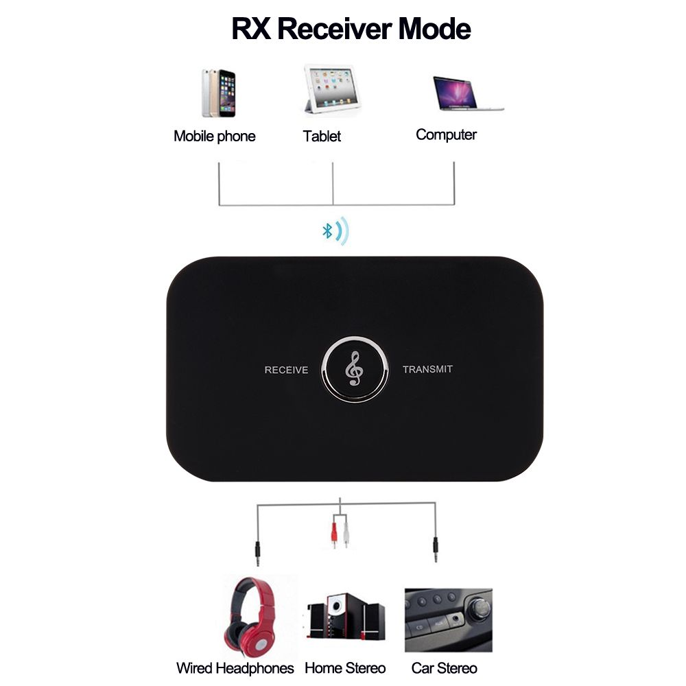 2 in 1 Bluetooth-Compatible Transmitter & Receiver, as a Bluetooth-compatible Audio Transmitter, B6 is specially designed for the Audio Devices (such as MP3, MP4, TV and PC, etc.) without Bluetooth-Compatible function. You can connect the Bluetooth-CompatibleTransmitter to the audio devices without Bluetooth-Compatible function via the included 3.5mm Audio Plug, changing these audio devices into Bluetooth-Compatible audio devices, and making it work with Bluetooth-Compatible Headset and Speaker; as a Bluetooth-Compatible Audio Receiver, B6 is specially designed for Car Stereo syst and Home Audio System. It can change the traditional Car Stereo syst and Home Audio System into Bluetooth-Compatible ones, and easy to pair with Bluetooth-Compatible Smart Phones, laptop, tablet, etc. With this product, you can greatly enjoy music from your phone, laptop, tablet without the hale of cables.