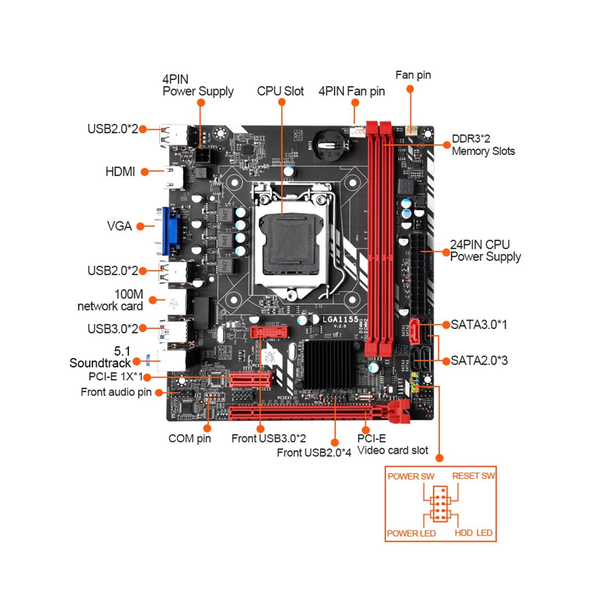 INTERNAL I/O: 4x SATA III Connector1x USB 2.0 Header (each header supports 2 USB 2.0 ports)1x USB 3.2(Gen1) Header (each header supports 2 USB 3.2(Gen1) ports)1x 8-Pin Power Connector1x 24-Pin Power Connector1x CPU Fan Connector1x System Fan Connector1x Front Panel Header1x Front Audio Header1x Clear CMOS Header1x COM Port Header