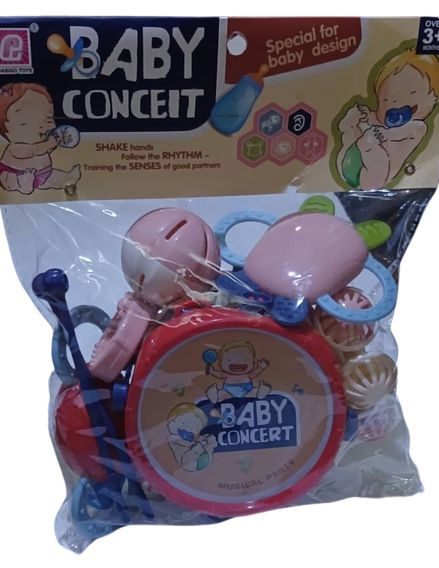 Babies Musical Concert Toys - Drum, Rattles, Teethers And ShakersIt helps children to experiment with sounds, beat and rhythm, will be beneficial to children's brain development.Not only creates more interactions between the parents and the kids from playing toys, they also highly contribute to children's creativity, concentration, development and intelligence. The wide variety of instruments and sounds will help improve your child's motor skills, hand-eye coordination and rhythm This concert toys for babies 3 month + includes plush bright colored rattle and teether which can attracts infants' attentions,suitable for different stages of baby's development.Looking for baby shower gifts or newborn baby gifts idea for all season? Our baby rattle teethers make an adorable gift set that will bring joy.