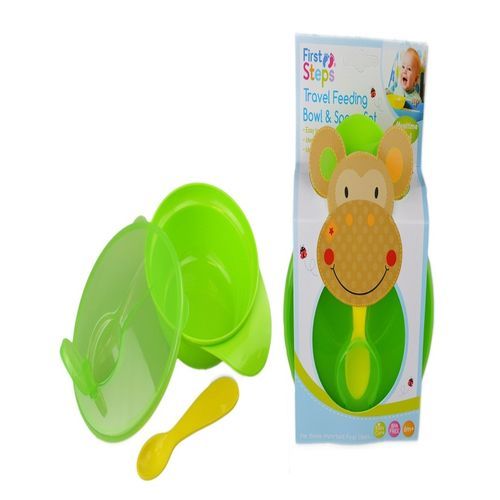 First Steps Baby & Toddler Colourful Bowl and Spoon Set with Lid. Easy Grip for Small Hands. Ideal for Travel or Food Storage. Lovely Weaning or Feeding Bowl. 4 Colours Available.