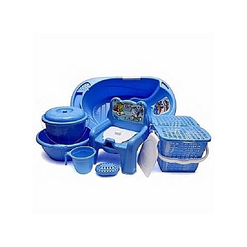 - The baby bath set comes in blue color.