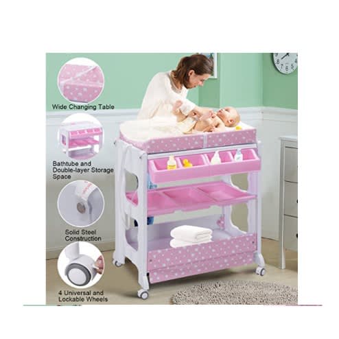 Buy Baby Bath Tub With Stand - Baby Bath And Changing Table/diaper Organizer - Pink in Nigeria