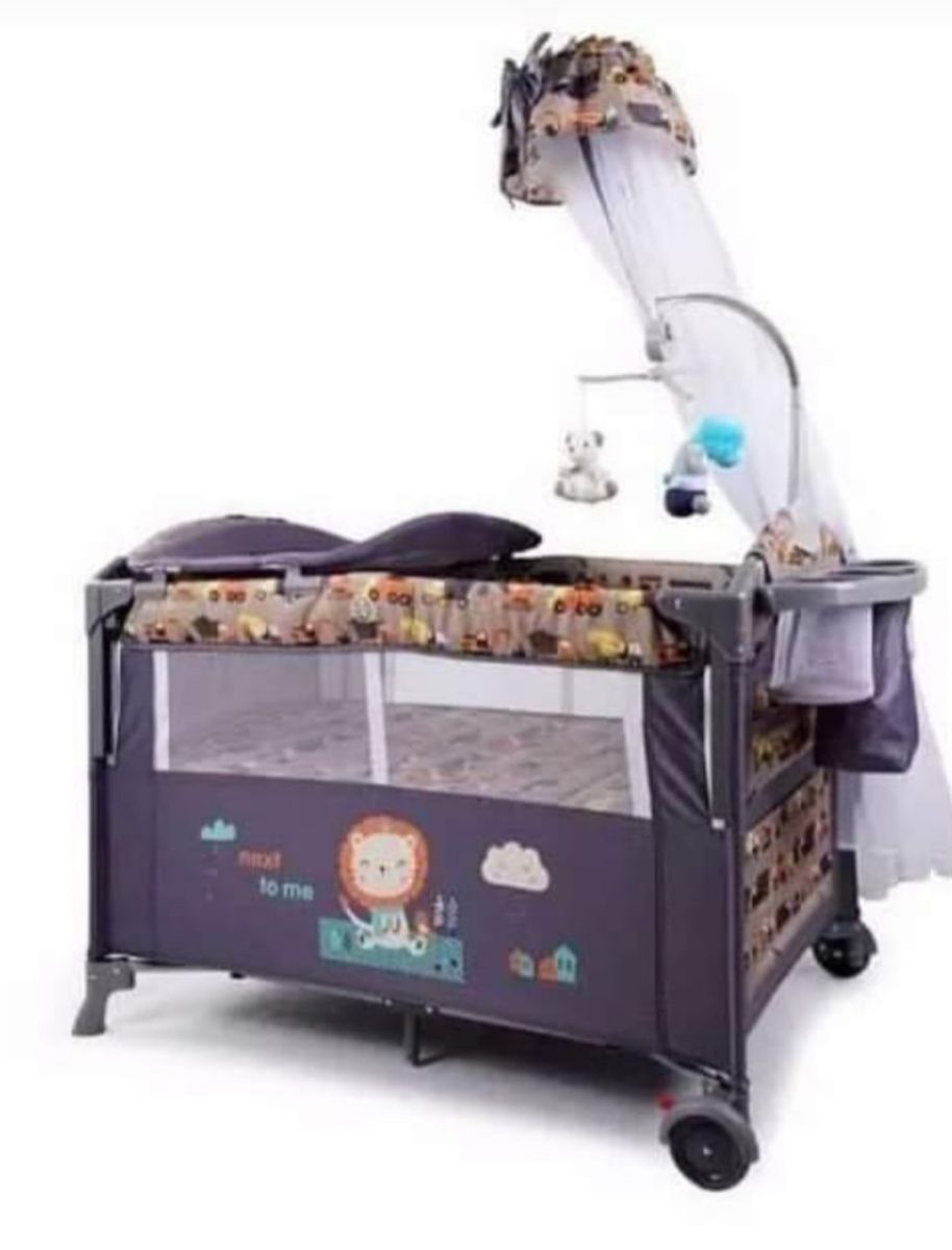 Latest baby bed with beautiful colours, attached dresser, treated mosquito net, under zip space for cloth, 2 side rollers and padded soft foam,