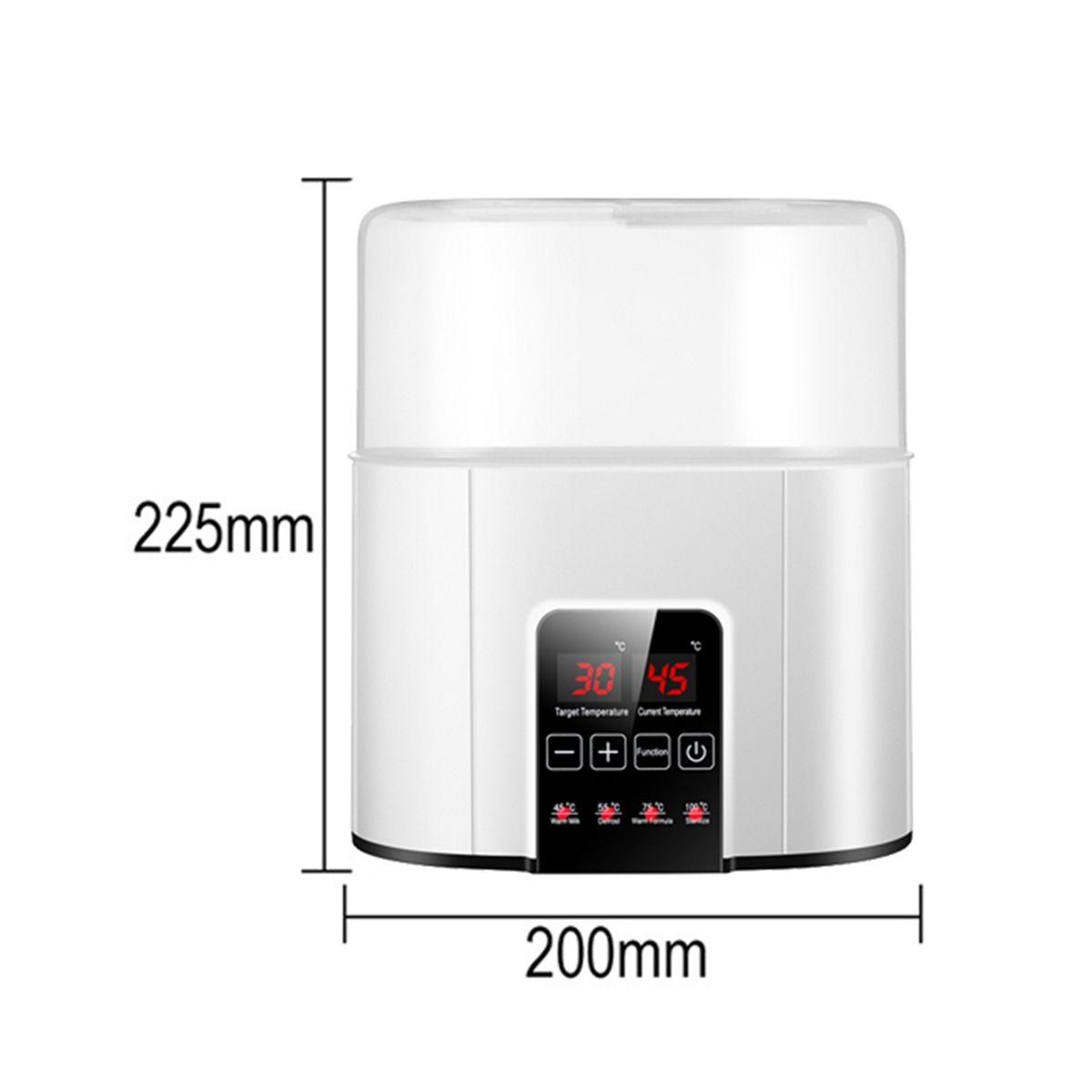 Detailed Information About The Product:[Fast Warming in 3-7Mins]Takes 3-7mins to heat the breastmilk and formula to body temp, the fast milk warmer quickly calms the crying and hungry babies and makes life easier. Built-in sterilization function to clean bottles and nipples with high temp steam. Beeps when heating or steaming is complete and auto powers off for greater safety and convenience.