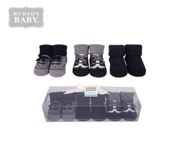 this is a lovely set of three assorted design baby boy shoe socks . It will look nice on you little ones feet. Machine washable , age 0-9month .