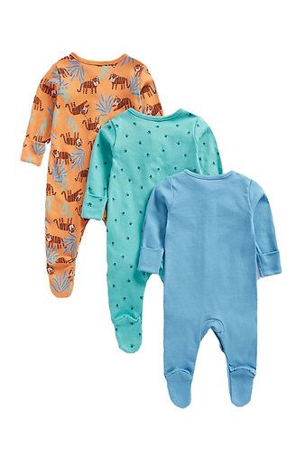 The perfect outfits for sleepy little cubs. Filled with colour and cute tiger characters, each sleepsuit in this set is crafted from naturally breathable, soft-on-skin cotton for comfort. Full popper opening makes dressing and night-time nappy changes quick and easy.
