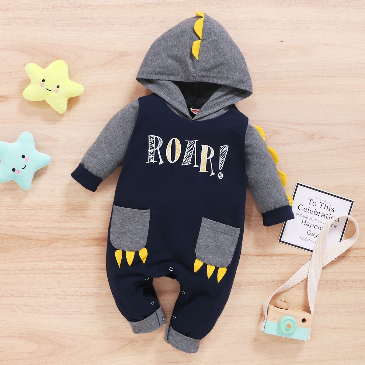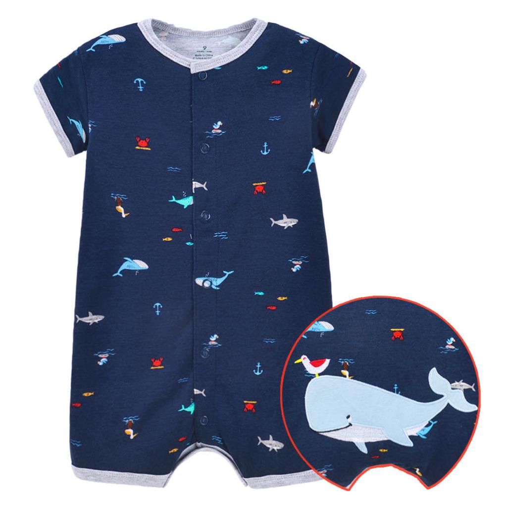 Your little sport will have fun is this striped alligator graphic romper by Carter's. In grey.