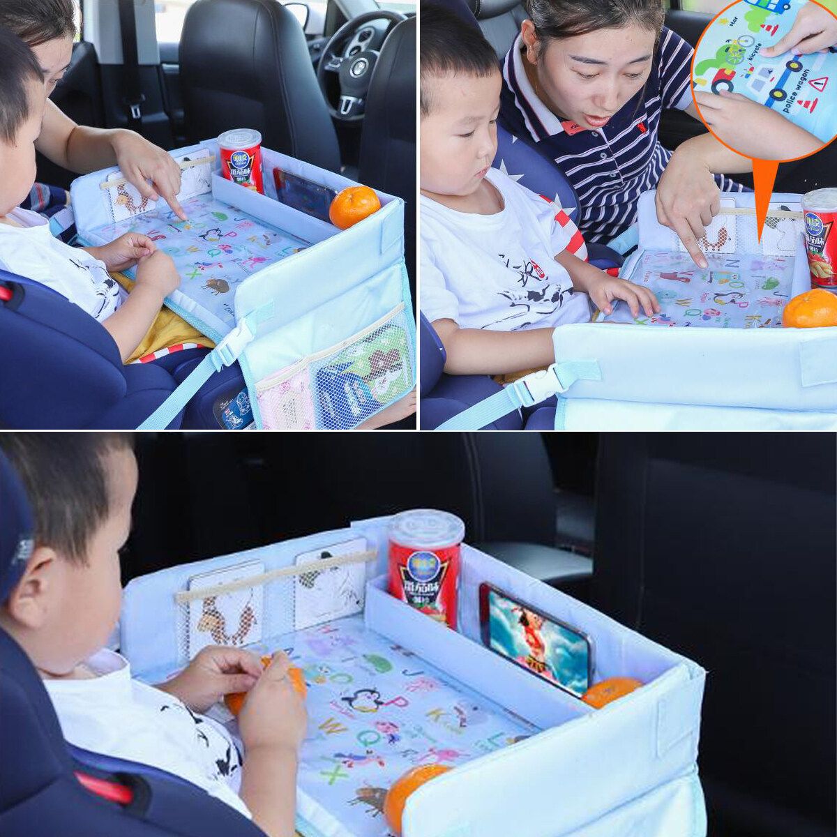 Baby Car Safety Seat Table Portable Cartoon Children Kids Tray Cellphone Holder Food Drink Table