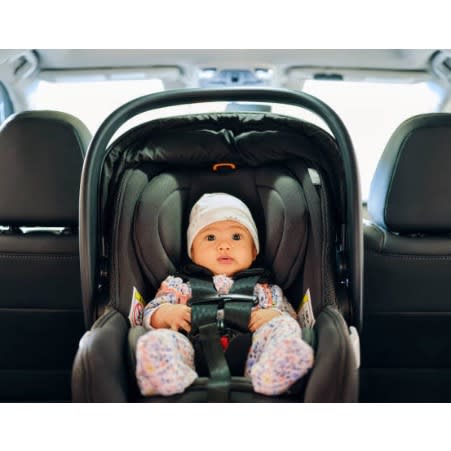 The car seat will also fit three across the back seat of most vehicles, which is great for growing families.