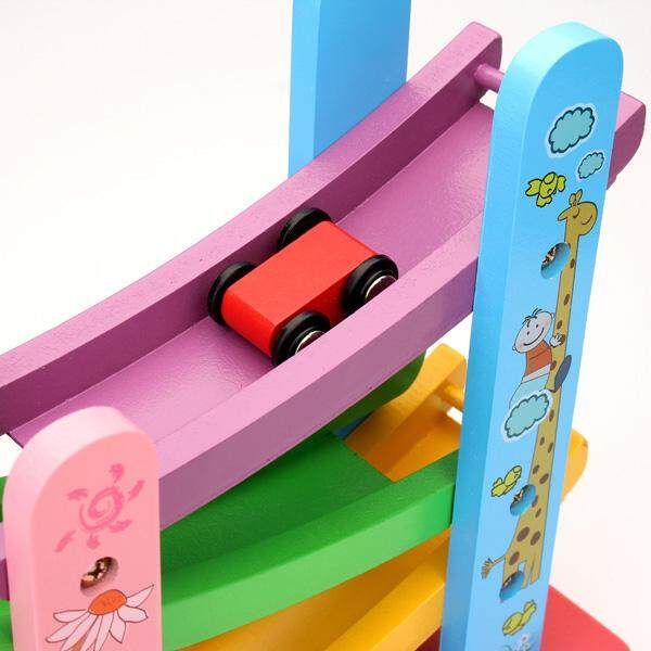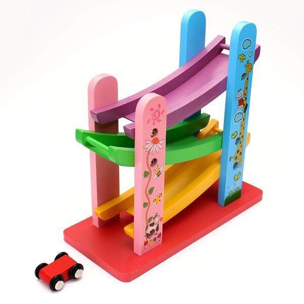 Baby Children Wooden Roller Coasters Slide Three Layer Gliding Car