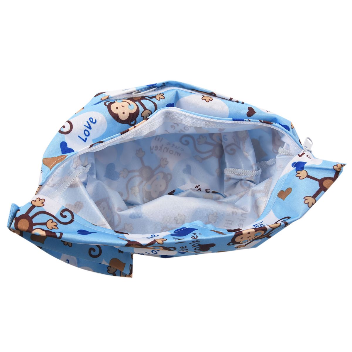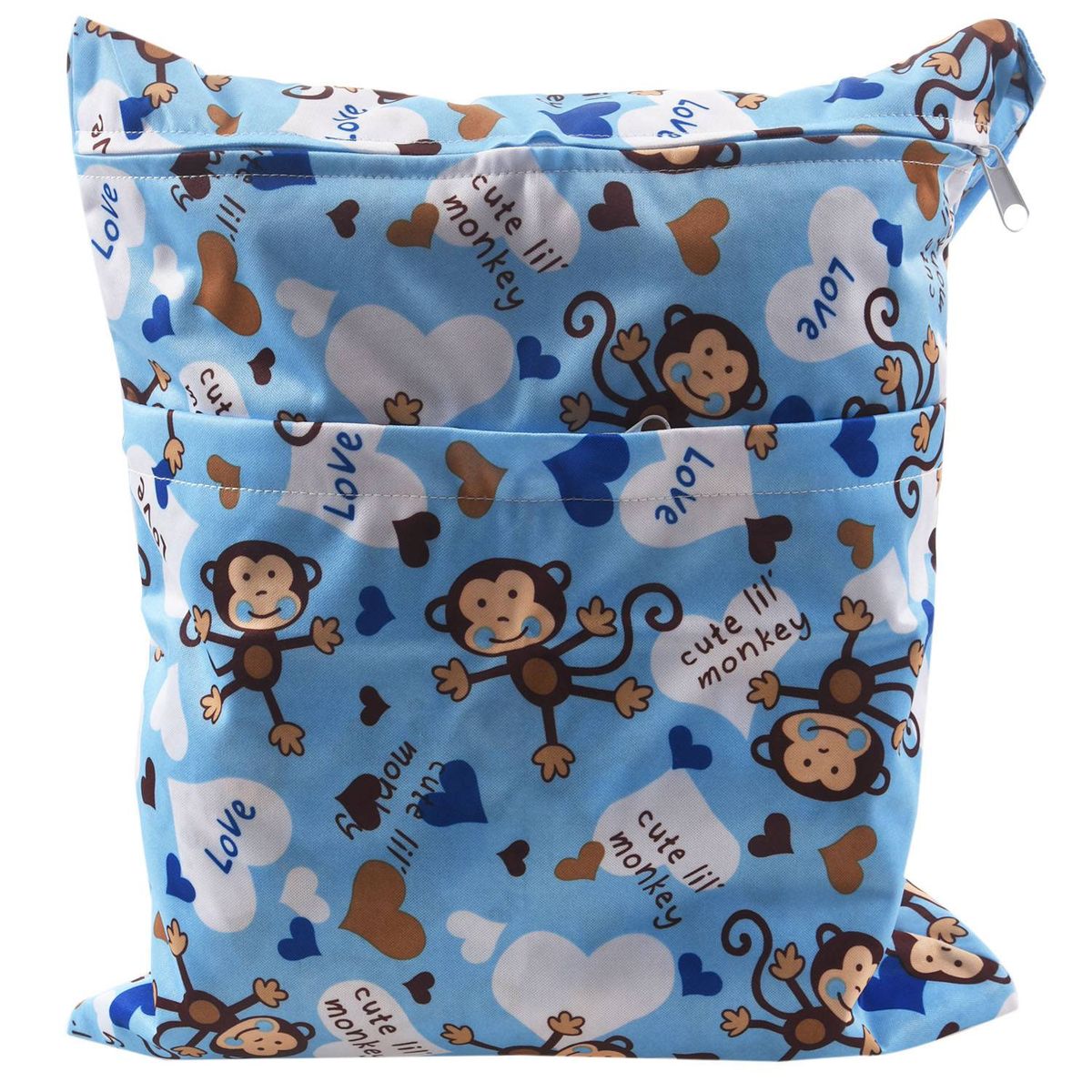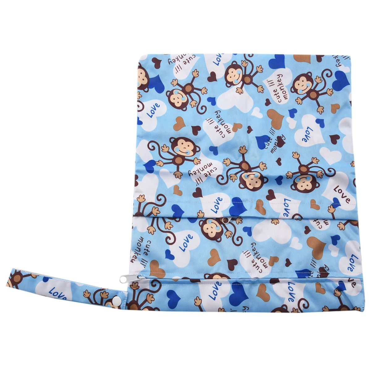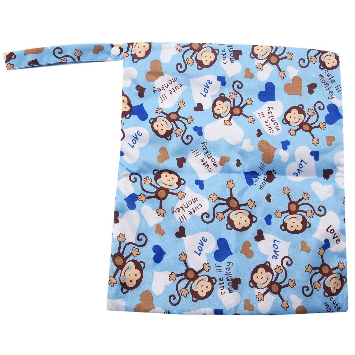 SODIAL(R) Baby cloth waterproof diaper bag Reusable washable diaper Double zip closure bag (monkey pattern, blue)