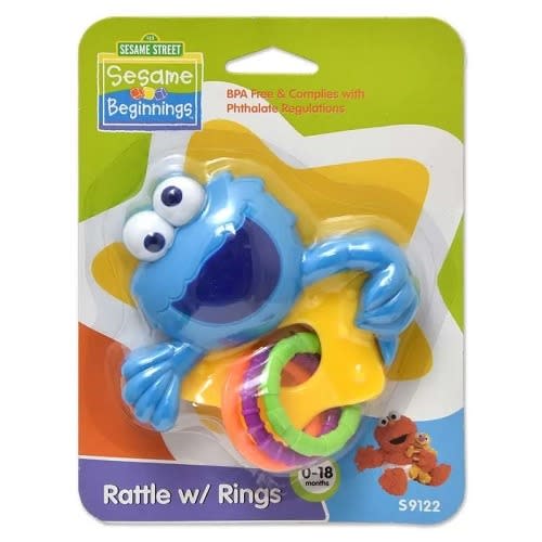 Buy Baby Cookie Monster Rattle With Rings - Blue in Nigeria