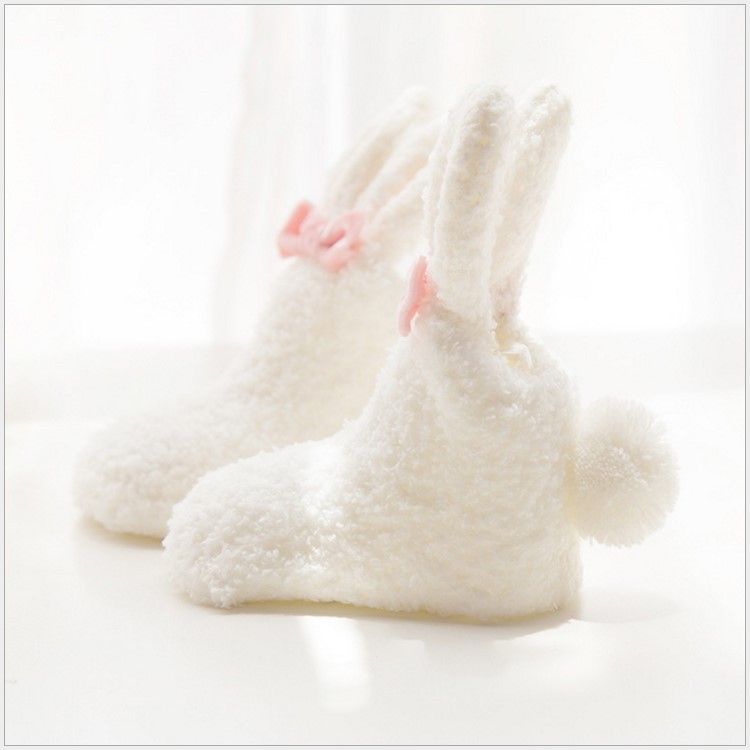- Pretty cute bunny style slipper socks. Thick fleece, soft and comfortable.