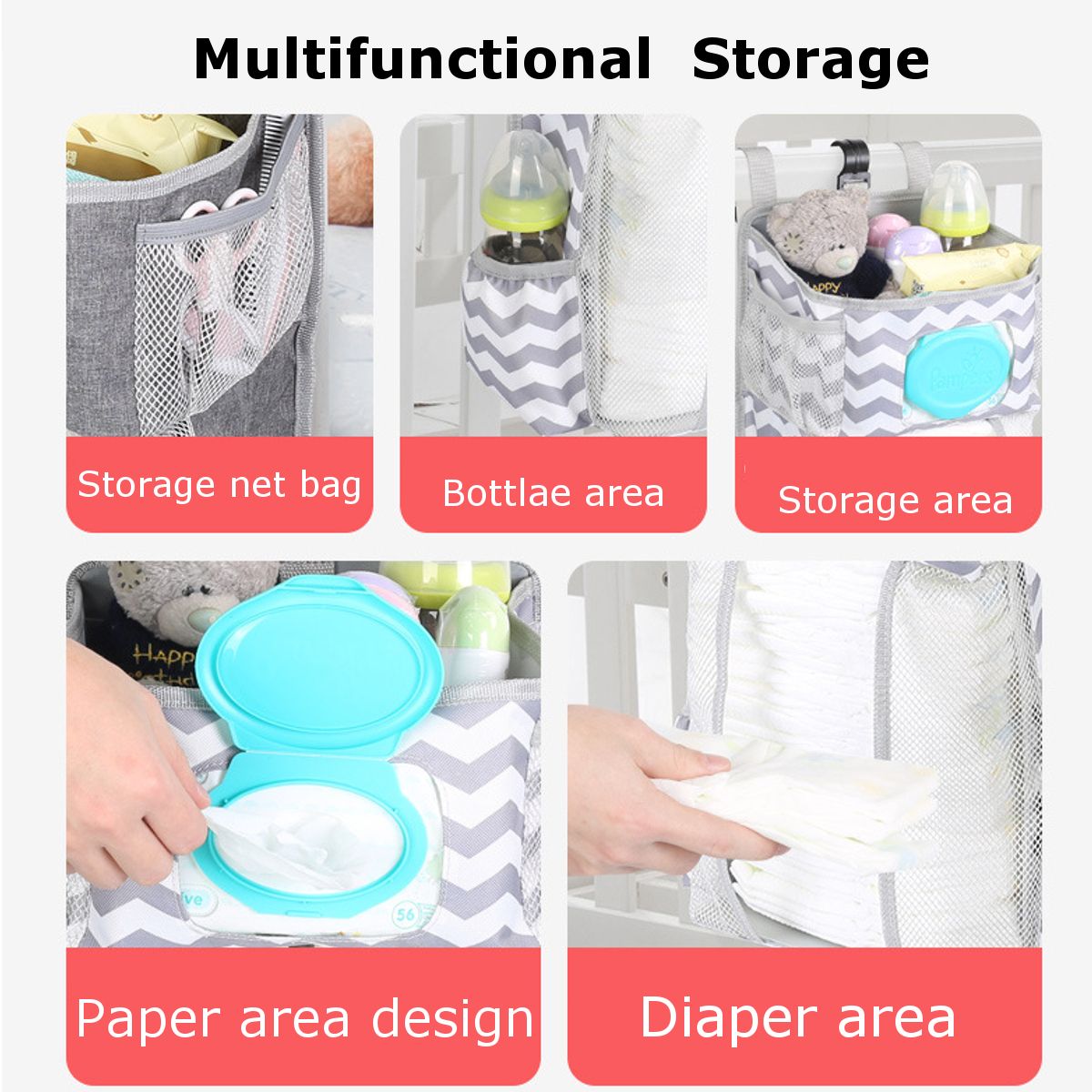 Features:-- There are stickers and hook hanging ways, suitable for all kinds of cribs.-- Removable board design: it's more convenient.4mm thickness environmental friendly hollow plate: the maximum -- weight can be about 5kg.-- Can store baby diaper/wet towel/napkin/saliva towel/milk bottle/skin care products and supplies.Specification:Material: Oxford cloth + board + diamond meshSize: 23x16x44.6cm/9.1x6.3x17.6in: Grey, Grey+WhitePackage Included:1 x Baby Crib Hanging Bag Note:1. Please allow 0.5-1cm differences due to manual measurement.2. Due to the light and screen difference, the item's may be slightly different from the pictures.