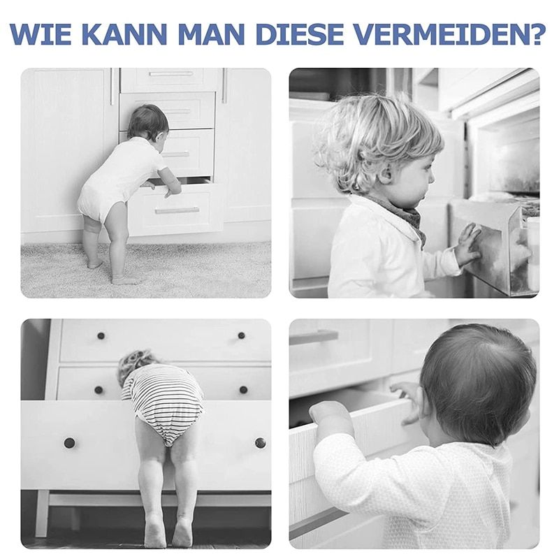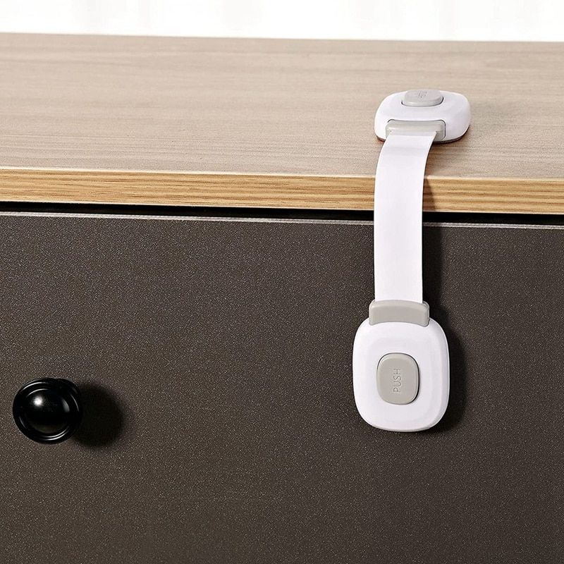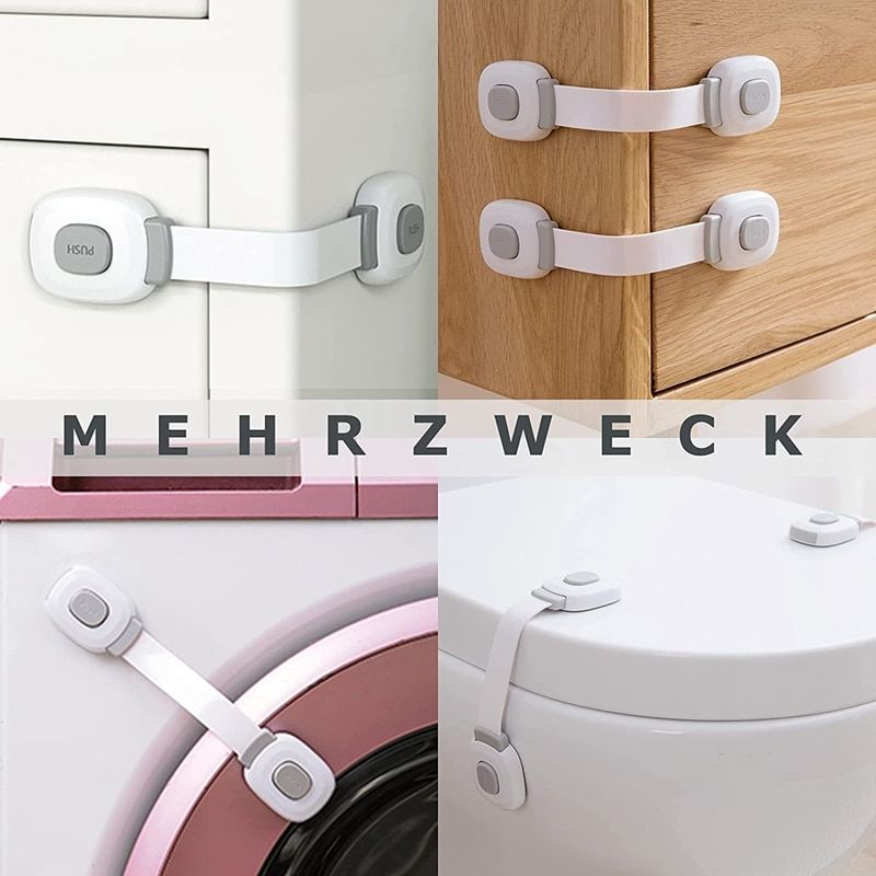 Multipurpose:Suitable for toilet, trash can, refrigerator, washing machine, door, window, grid bed, shelf, stove, stairs, dreer, safety gate and much more. Thanks to the baby drawer lock, the baby or toddler is optimally protected from danger in the home Safe material: the envmental materials of ABS are safe and non-toxic to humans and animals. With strong adhesives. Adhesive covers the circular base of the cabinet lock, better adhesion. Easy to remove, leaves no marks Easy to install and use: 1. Clean the desired area. 2. Remove the sticker. 3. Apply and pre for approx. 10 seconds. 4. Pre the push on for easy opening Friendly to furniture: baby cupboard safety is strong enough to stick but gentle enough to take it off. Heat the cabinet lock for a few minutes with a hair dryer. The adhesive will become soft and you can lift it from one side and peel it off. The remaining adhesive can be rolled off, if residue, furniture polish can also be used for cleaning Keep your furniture always beautiful: baby cabinet lock. Take a unique and simple design like an ornament, make your house safe and stylish. Colour:Gray+ Material: ABS Size:19.2cm Package Contents: 6 x Drawers Lock Only the above package content, other products are not included. Note: Light shooting and different displays may cause the color of the item in the picture a little different from the real thing. The measurement allowed error is +/- 1-3cm.