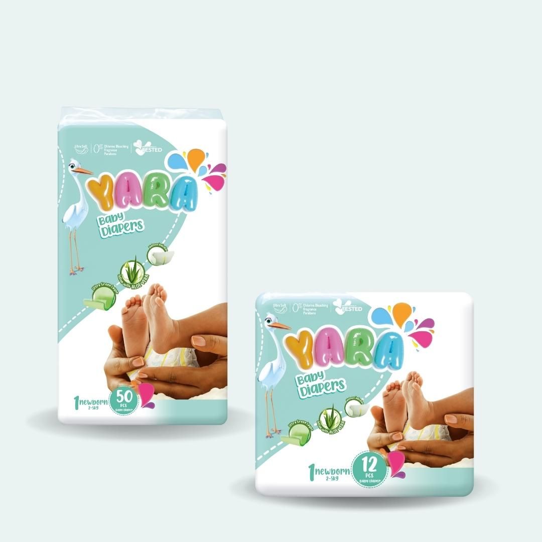 12 pcs of disposable Yara Baby Diaper Size 1 Newborn 2-5kg.