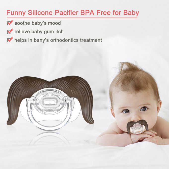 This is an unique mustache pacifier for the baby to satisfy suck. It is safe to use and interesting at the same time. The Pacifier is so cute, you will have countless sweet memories along with your baby's look. Take it home now.