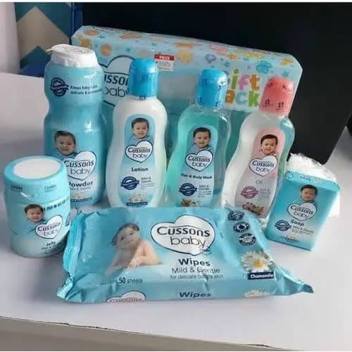 he Cussons baby gift pack provides the ultimate essential baby care set to give your baby that much needed complete care from head to toe. This gift pack is carefully assembled with the user - the baby, very much in mind. Every item in the Cussons baby gift pack is designed to keep your baby's delicate skin as comfortable and as radiant as possible.
