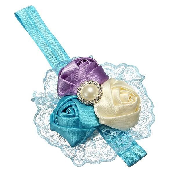 1X Baby Girl Rose Flower Rhinestone Headband Elastic HairBand Accessories Lace Gift