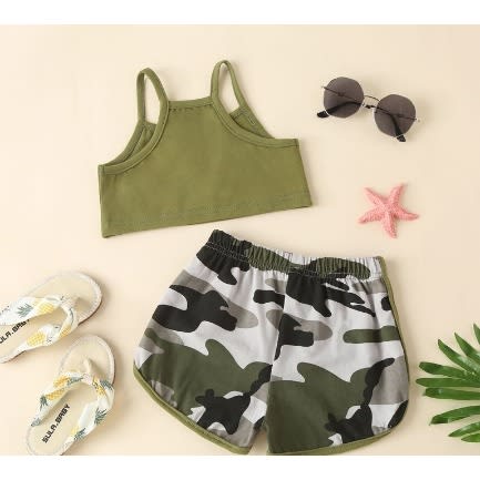 Buy Baby Girl Tracksuit Set - Camisole Crop Top + Shorts - Green in Nigeria