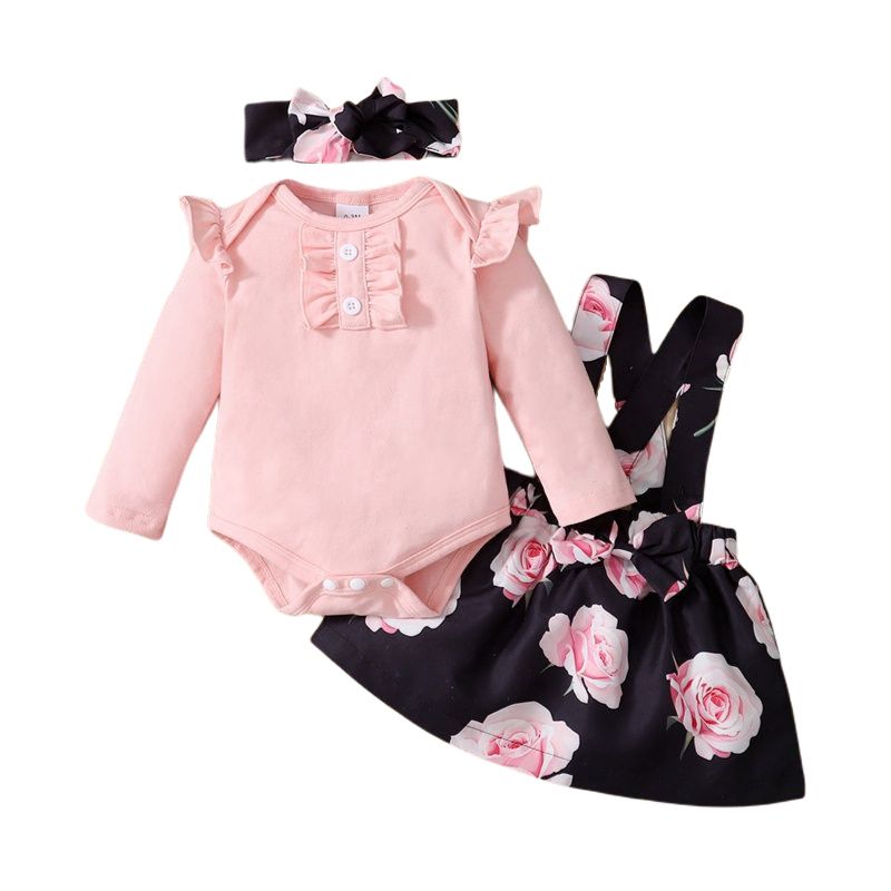 Buy Baby Girls Dresses Long Sleeve Bodysuit Floral Design Suspender Skirt With Headband in Nigeria