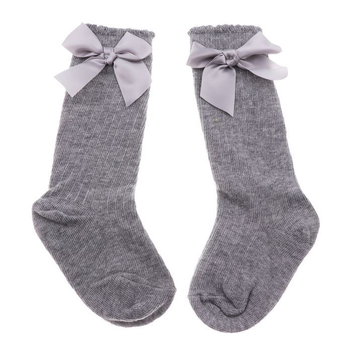 Baby Girls knee High Socks Bowknot Toddler Babies School Socks 0-2T Gray