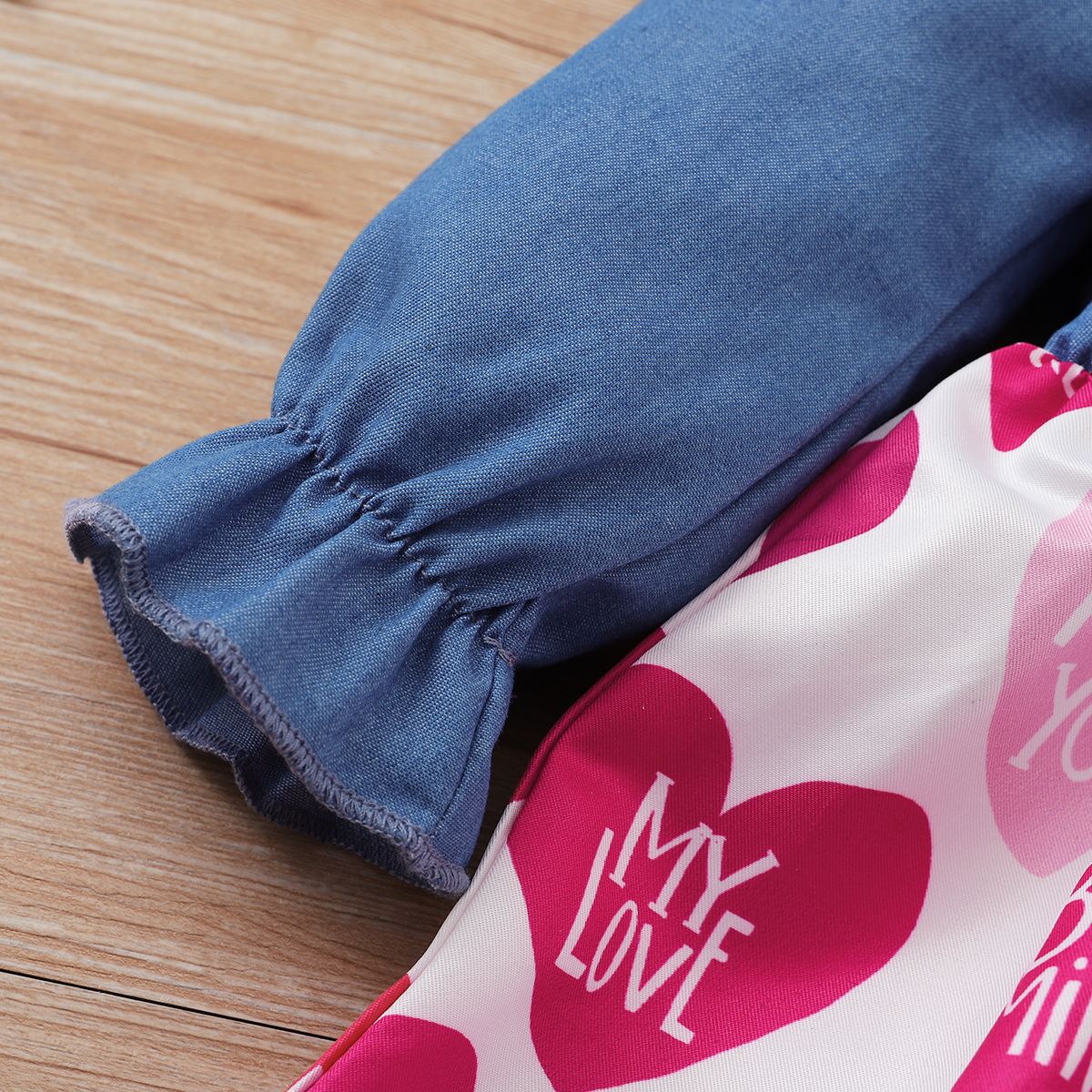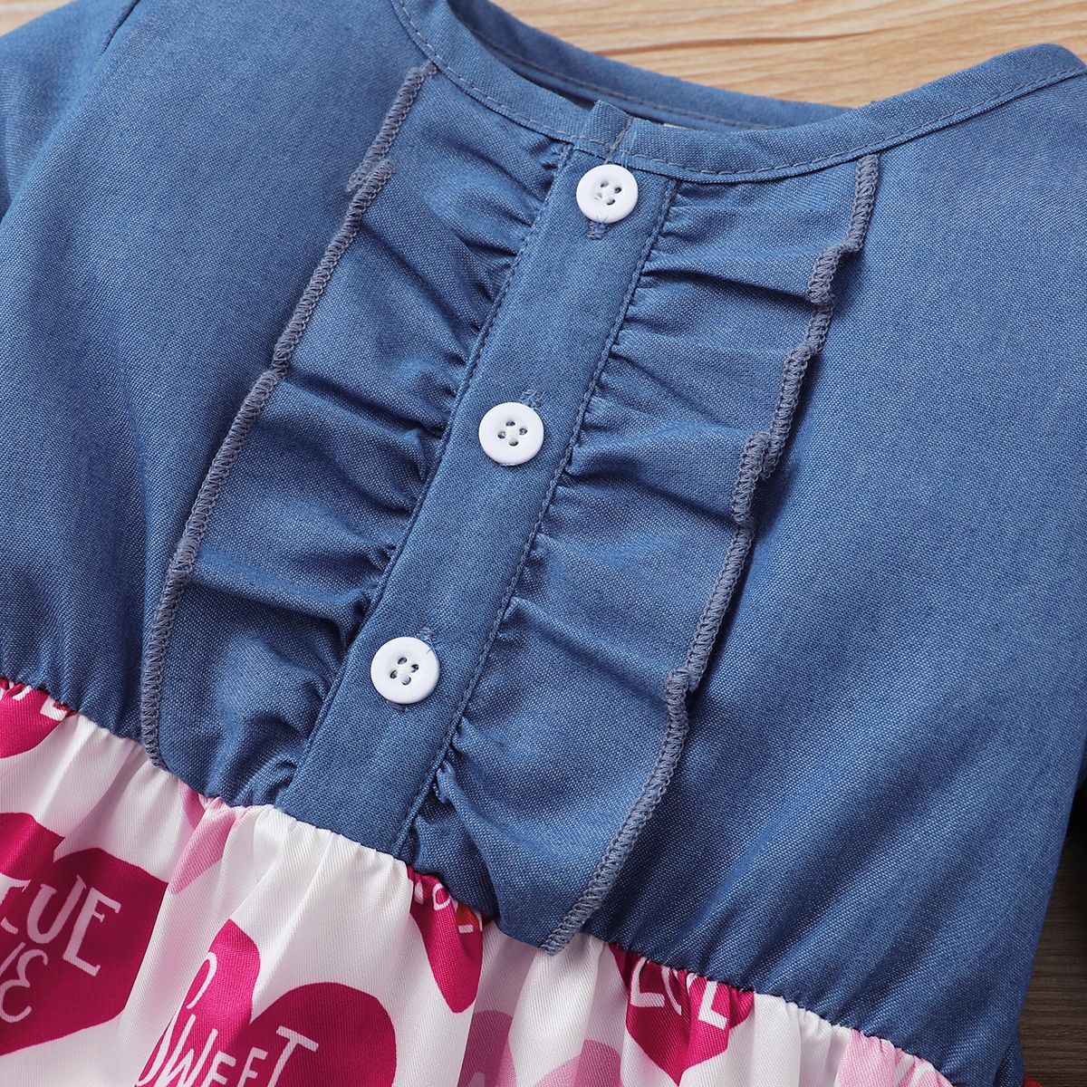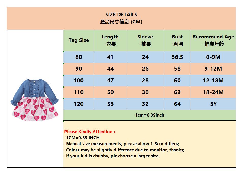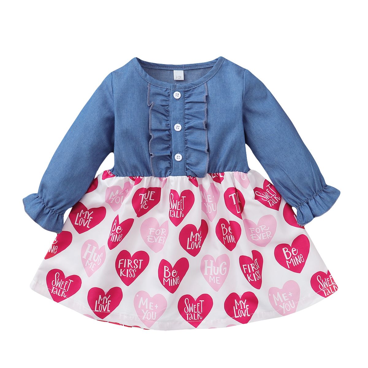 Buy Baby Girls Long Sleeves Denim Patchwork Hearts Design Dress in Nigeria