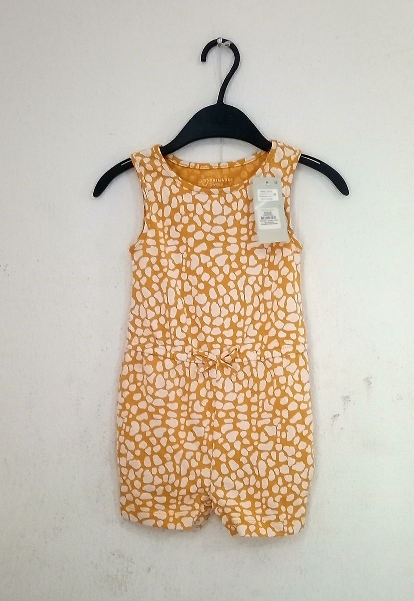 playsuit from Primark. Made from 100% Cotton fabric, it comes in multi colored love prints, with elastic waistband and under butt button for easy removal. Pair with white sneakers for a trendy look.