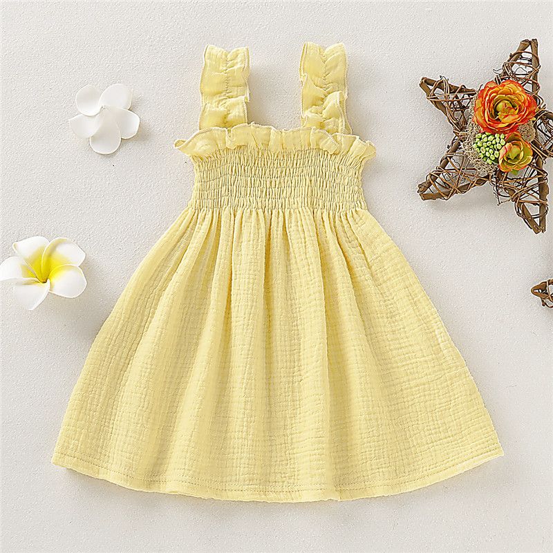 Buy Baby Girls Solid Color Maxi Dress Cotton Lightweight Sundress Yellow in Nigeria
