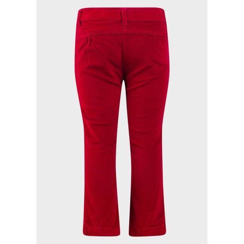 Baby girls red pants by Vertbaudet, made from soft cotton velvet. Mid-weight and stretchy with adjustable waistband, they are a classic style. Fully lined with 100% Cotton