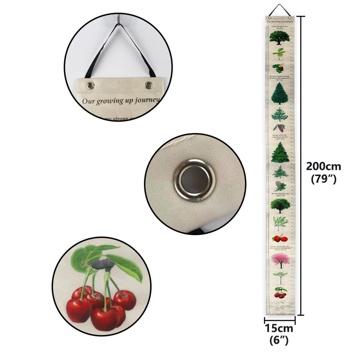 Growth Chart: Each of our growth charts is made of durable waterproof polyester, product size: 78.74x5.91 inches (200*15cm). Measured in centimeters and inches.
