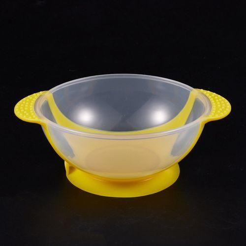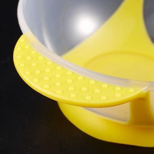 SODIAL(R)Baby Infants feeding Bowl With Sucker and Temperature Sensing Spoon Suction Cup Bowl Slip-resistant Tableware Set(yellow)