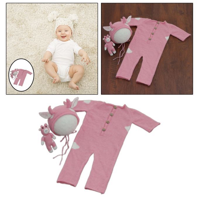 Buy Baby Jumpsuit Knitted Cotton Cute Cow For Halloween Birthday Pink in Nigeria