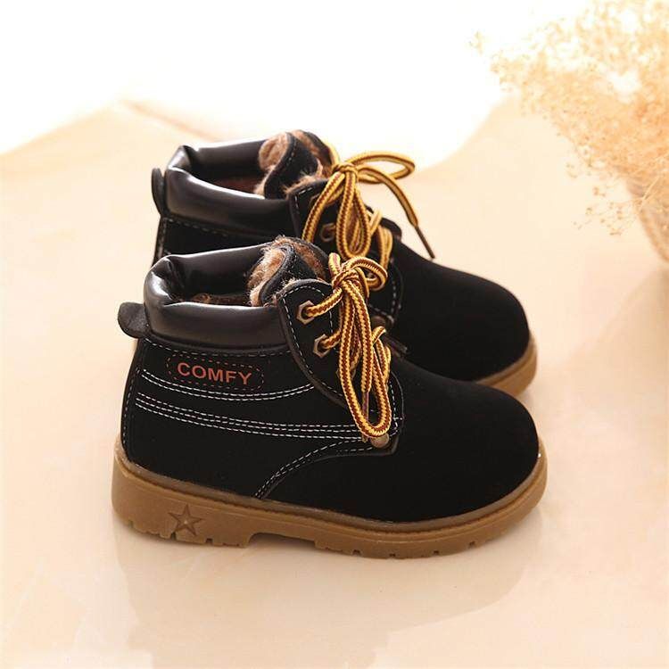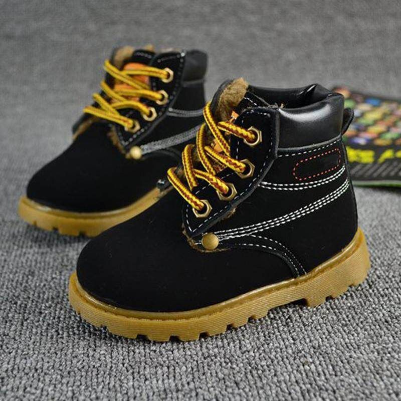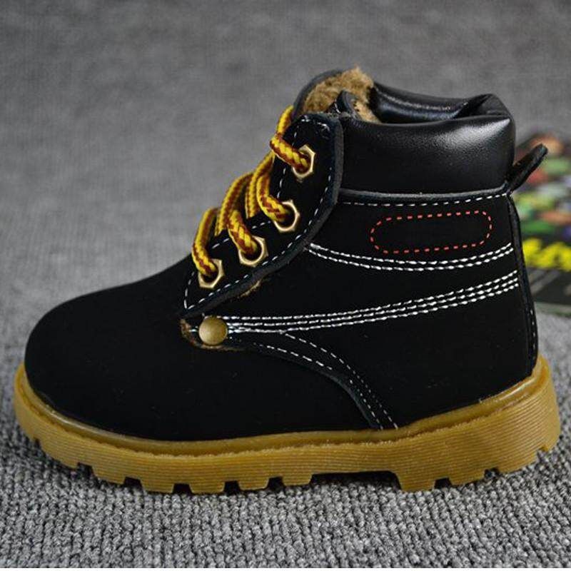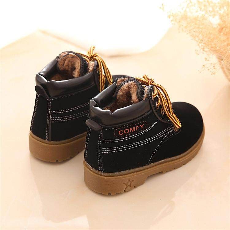 Baby Kids Boy Girl PU LeatherSnow Boots Fur Lined Winter Warm Shoes