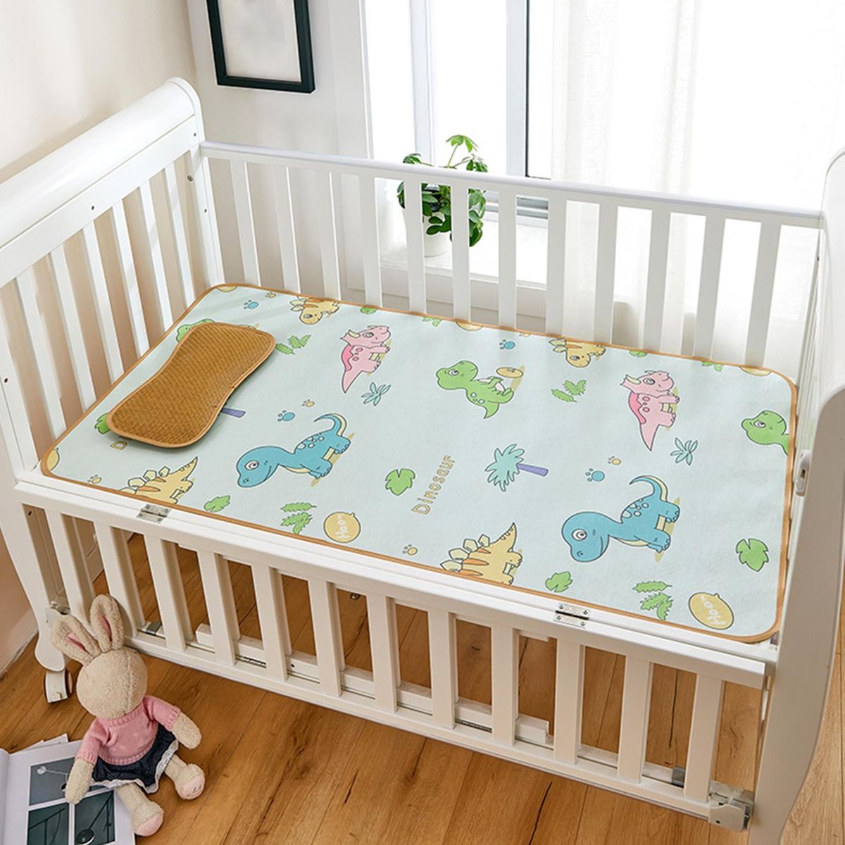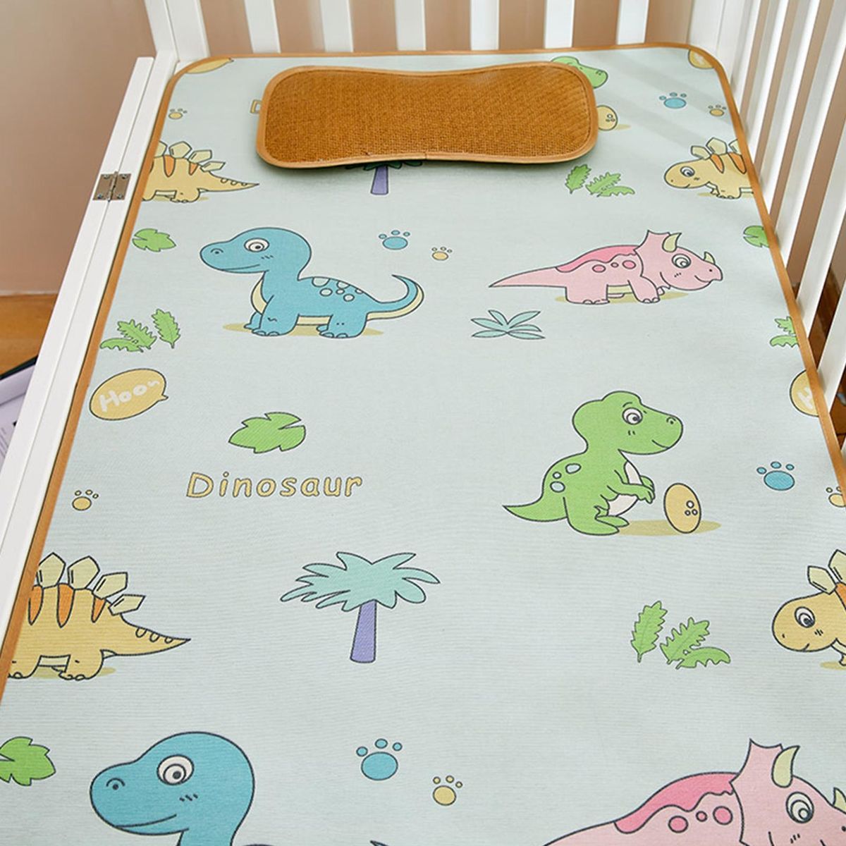 Your baby will experience a soothing and undisturbed sleep in this adorable cartoon-printed mat. crafted from breathable ice silk fabric, this cooling pad is not only incredibly soft but also effectively wicks away heat and promotes air circulation. say goodbye to stuffiness and discomfort as this mat regulates your baby's body temperature, keeping them cool while they sleep or play in their crib.