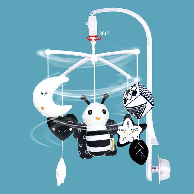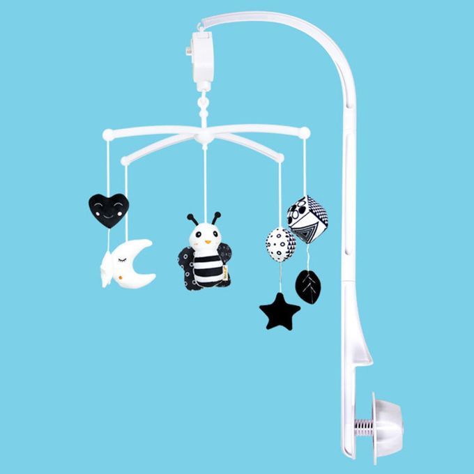 Bed Bell Holder;Bed Bell Toy Music Box Baby Crib Rattles Newborn;Baby Bed Bell Holder Clockwork Toy Infant Baby;Baby Rattle Mobile Crib Toy Bed Hanging Newborn;Black and White Baby Mobile for Crib Detachable;Rotating Mobile Bed Bell Musical Box Hanging Toy