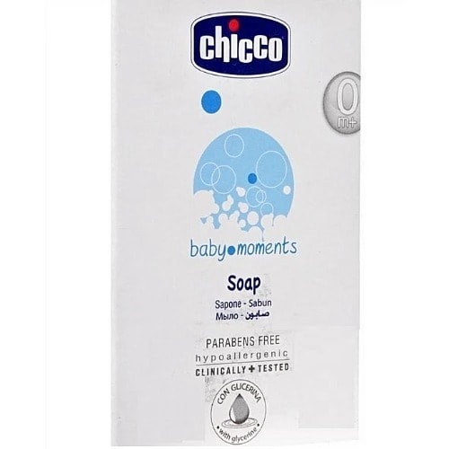 Chicco bathing soap gently cleanses and moisturizes baby skin with its glycerine-based formula.