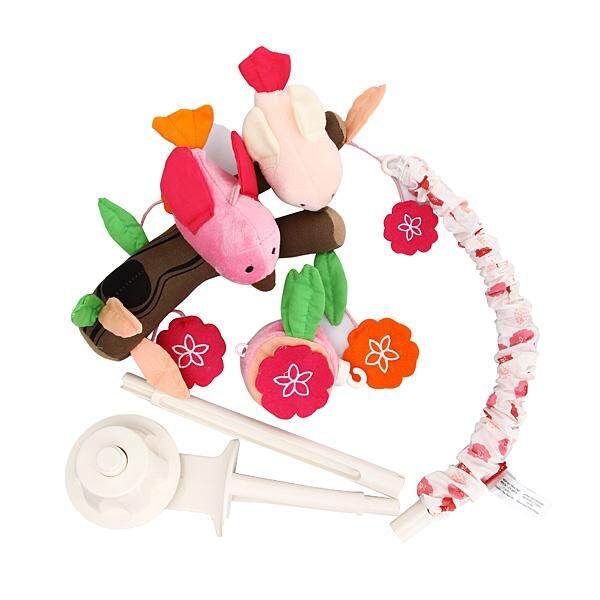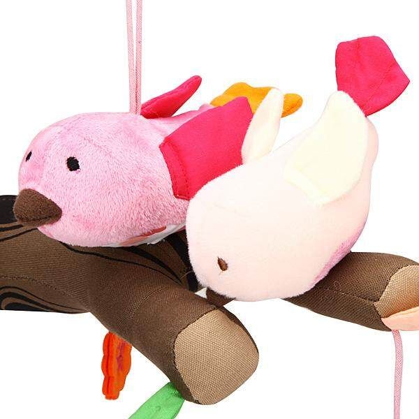 Two sweet birdie sit perfectly perched on a branch above baby,rotating slowly to a soothing tune.Pink and orange flowers dangle below,brightening her bedtime view.?